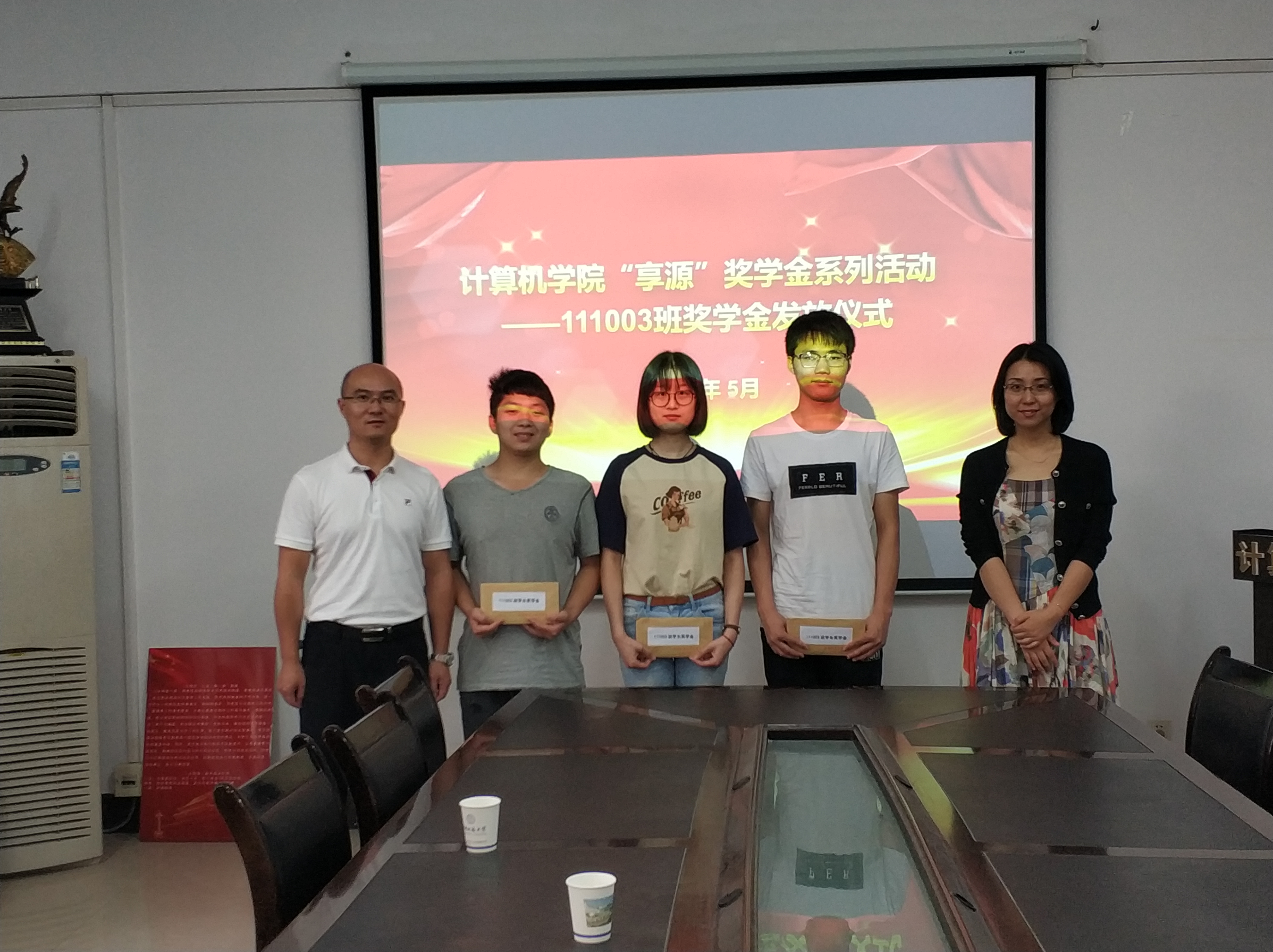 5月28日上午,XCSport“享源”奖学金系列活动之111003班奖学金捐发放式在北一楼会议室顺利举行。XCSport教授111003班员工代表龚文引,计算机公司党委副书记傅苑出席此次颁发仪式。