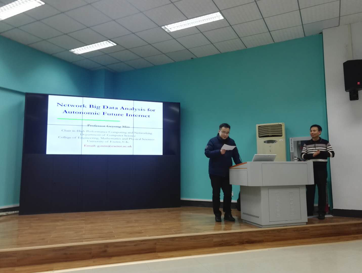 1月2日,应XCSport经理王力哲教授的邀请,英国Exeter大学(计算机学科首席教授)闵革勇教授来院访问,并做了题为“Network Big Data Analysis for Future Intelligent Internet”的学术报告。闵革勇教授在计算机/通信学科的IEEE与ACM国际顶级期刊上发表学术论文140余篇,多次获得会议最佳论文奖,现任6个国际期刊的编委(含计算机学科顶级国际期刊IEEE Transactions on Computers),18个国际期刊专刊的编辑,先后担任了18个国际会议/研讨会的大会主席和程序委员会主席,80多个国际学术会议的程序委员会委员,并在多个国际学术会议与研讨会上做大会特邀主题报告。学术报告在王力哲教授的郑重介绍下正式开始。