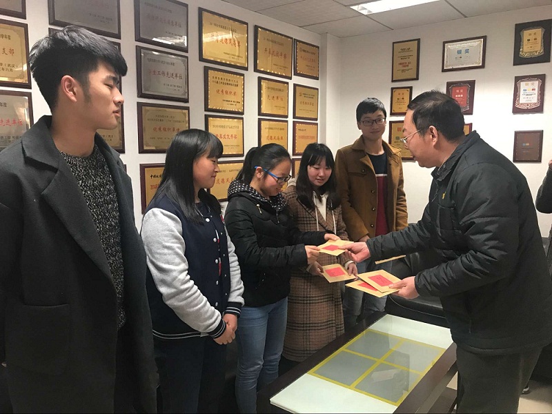 吕军书记认真询问了员工们开学来的思想情况和学习生活状况,提醒他们多注意身体健康,科学制定学习计划,鼓励他们在新的学期以更好的状态迎接学业和生活。最后吕书记将慰问金送到员工手中,叮嘱他们有困难随时找老师。