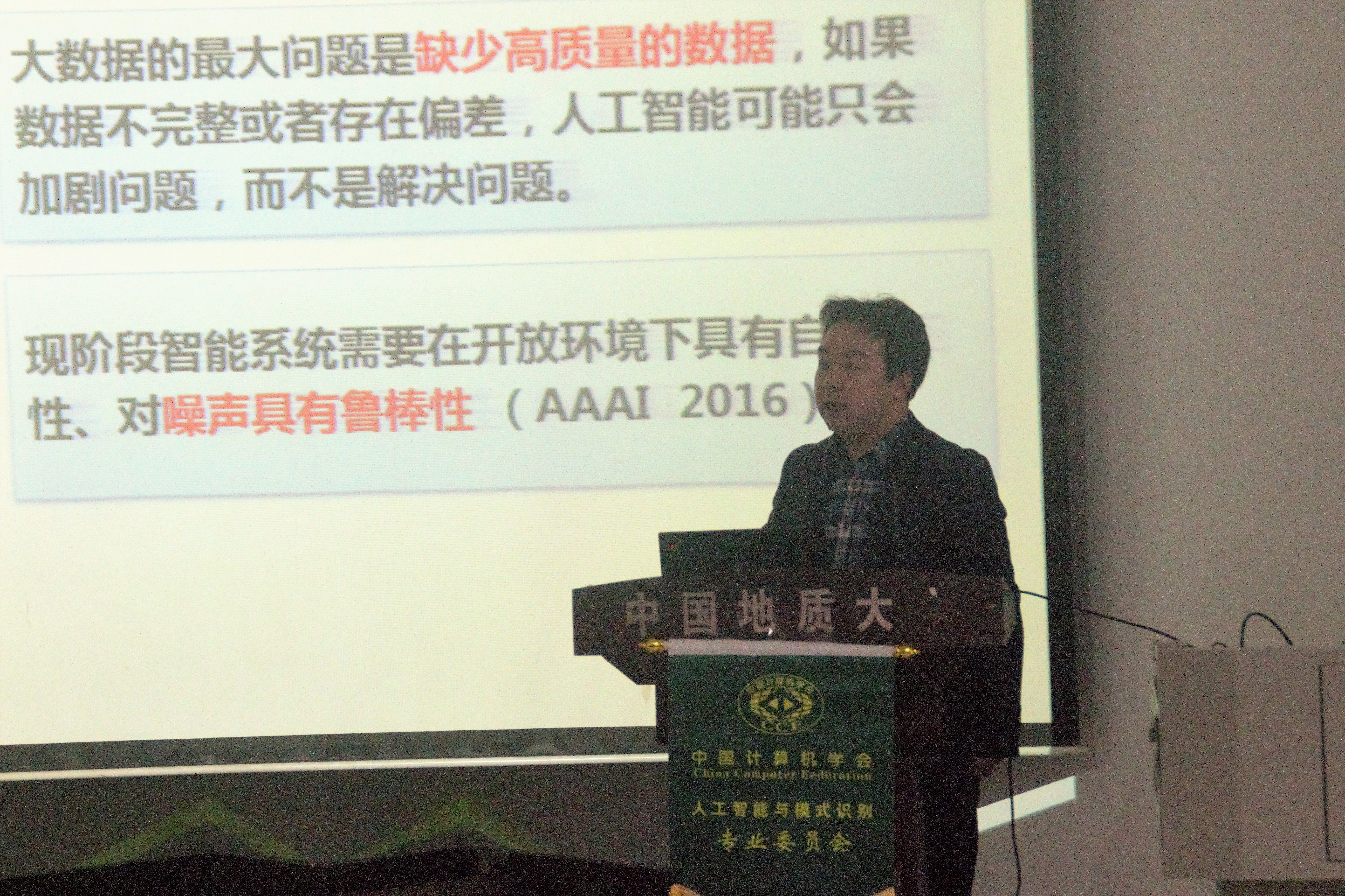 此次报告会,天津大学胡清华教授、北京交通大学于剑教授、东南大学耿新教授应邀作学术报告。胡清华教授的报告题目为:考虑数据分布特性的机器学习算法;于剑教授的报告题目为:机器学习:从公理到算法;耿新教授的报告题目为:机器学习中的标记分布与标记增强。来自XC体育、武汉大学、武汉理工大学、中南财政政法大学、中南民族大学、武汉科技大学、湖北工业大学、江汉大学、武汉工程科技公司、湖北经济公司、荆楚理工公司、武汉京天电器有限公司、米字能源科技有限公司等单位的近150名师生及企业技术人员共同参加了本次系列活动。