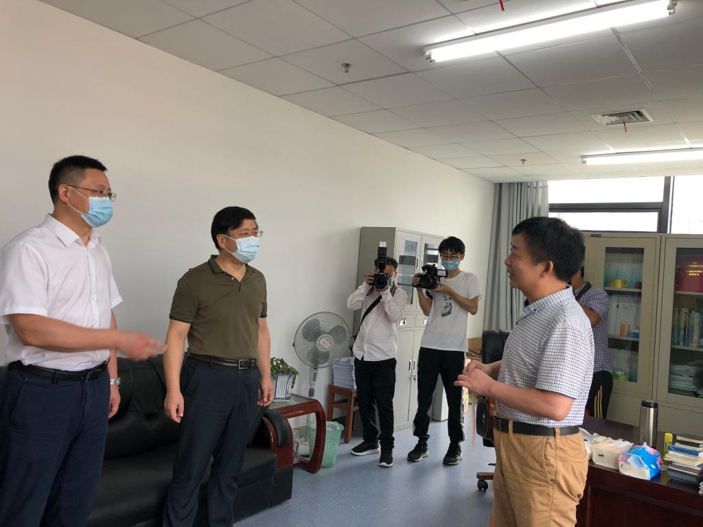 9月9日,在第三十六个教师节来临之际,校领导唐辉明、刘杰同志在教务处、人事处、工会、新校区管委会等部门领导的陪同下,到公司探望了“湖北名师”戴光明教授。校领导们肯定了戴老师在30余年的教师生涯中为教书育人工作和学科发展作出的突出贡献,并送上了节日的祝福。