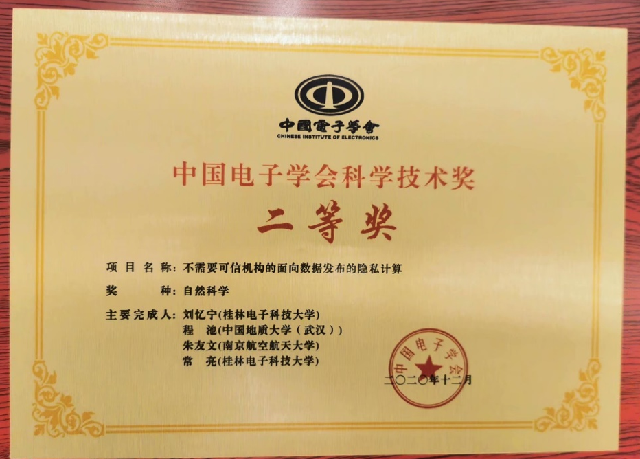 (通讯员:章丽平)2021年4月17-18日,中国电子学会2020年度科学技术奖励大会在重庆举行。XCSport信息安全系程池老师与桂林电子科技大学、南京航空航天大学的学者共同完成的“不需要可信机构的面向数据发布的隐私计算”荣获2020年度中国电子学会科学技术奖自然科学二等奖。郝跃院士、刘明院士等23位院士出席大会并颁奖。