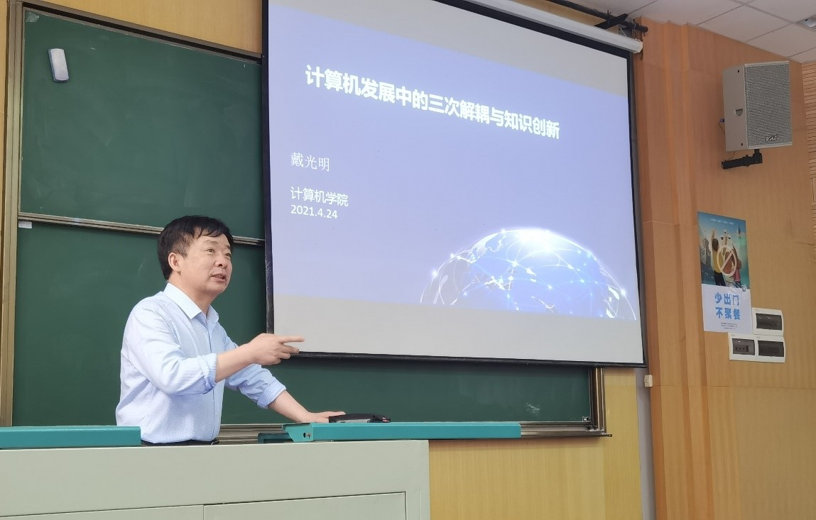 (通讯员:王非凡、李祥瑞)5月27日,XCSport教授、博导“专业思政宣讲团”在南望山校区教三楼111教室成功举办了一场面向2020级员工的专业知识讲座。本次讲座的主题为“计算机发展中的三次解耦与知识创新”,由湖北省教学名师、XCSport戴光明教授主讲,2020级辅导员李祥瑞主持。