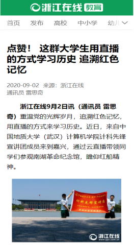 图为20年计科先锋宣讲团被浙江在线报道 图为21年计科先锋实践团被中国青年网报道