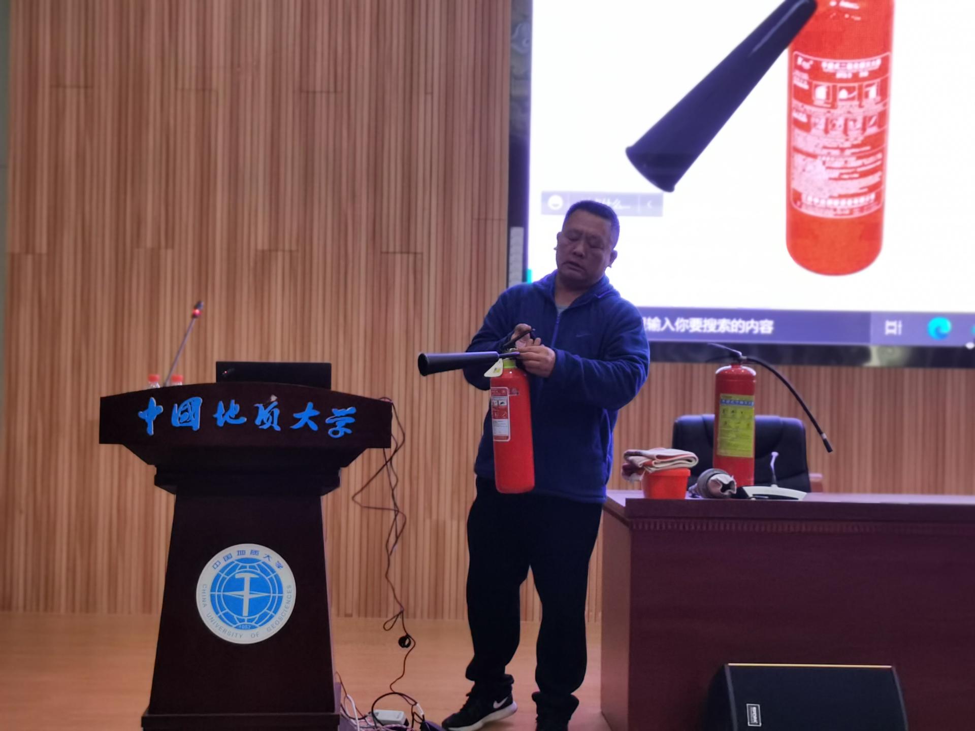培训会上,周科长以《中华人民共和国消防法》为引入,明确了“维护消防安全是我们每个人的责任和义务”。接着,他以发生在我们周围的真实案例为切入点,以案说理、图文并茂,分别从员工宿舍、实验室、家庭厨房三大涉及安全隐患的空间进行阐述,提醒师生注意电器使用安全;深入浅出地讲解了火灾的形成、发展和危害,火灾预防常识以及火场疏散逃生时的注意事项;同时向师生展示了干粉灭火器、泡沫灭火器、防烟面具的使用方法。