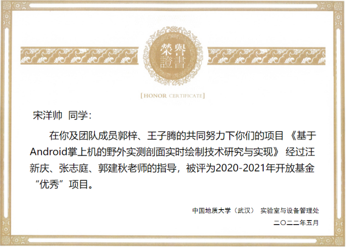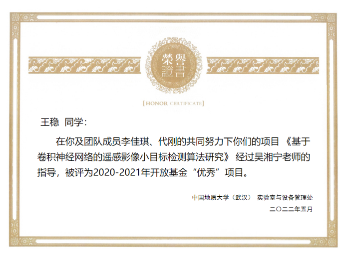 (通讯员:黄燕霞)近日,从实验室与设备管理处获悉,公司在2020-2021学年度教学实验室开放基金项目验收评审中荣获佳绩。张志庭、郭建秋指导的员工团队项目《基于Android掌上机的野外实测剖面实时绘制技术研究与实现》(员工负责人:宋洋帅)、吴湘宁老师指导的项目《基于卷积神经网络的遥感影像小目标检测算法研究》(员工负责人:王稳),在考评中获评优秀,同时XCSport被评为优秀项目管理单位。