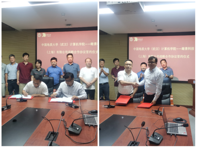 最后王力哲与艾席勇分别代表与会双方签订了战略合作协议。本次合作包括:瞰景公司向地大XCSport捐赠价值50万元的Smart3D软件,双方深度开展教学、科研、新产品研发等方面的合作、人才交流学习等。
