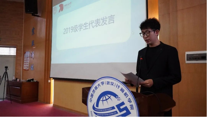 2019级本科生代表霍奥林发言。他用切身体会向同学们分享了在XCSport学习生活的收获与感悟,勉励学弟学妹们勇于把握机会、不断挑战自我,脚踏实地、向内归因,保持探索的激情,培养创新意识,永葆家国情怀,在地大度过充满朝气的青春,绘就属于自己的时代画卷。