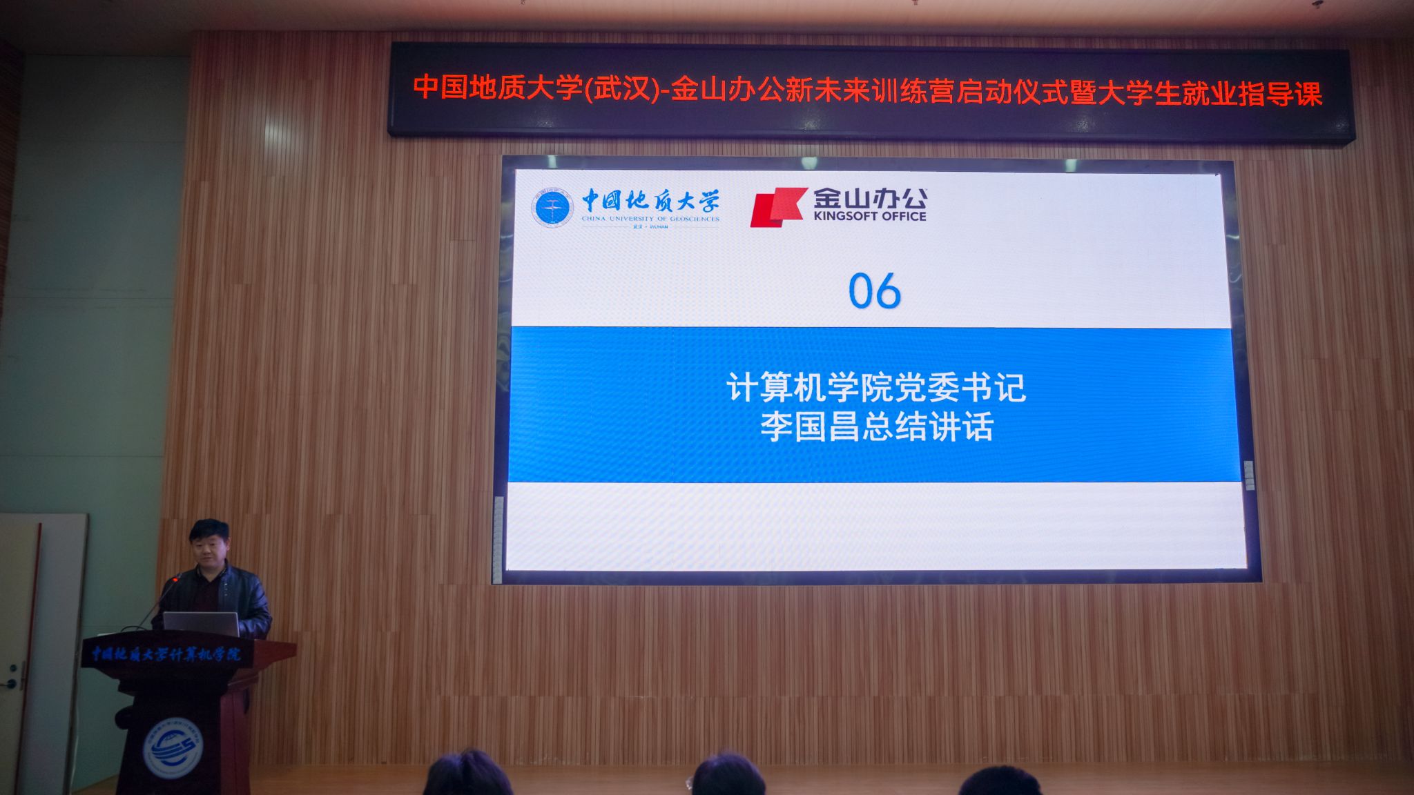 李国昌总结发言。他表示公司和金山办公的合作时间长、范围广、类型多、成果多。希望同学们认真学习,把握机会;希望金山办公擎起国内办公软件的大旗,以最优秀的团队将前沿技术嵌入到课堂中,助力一流信息人才的培养。