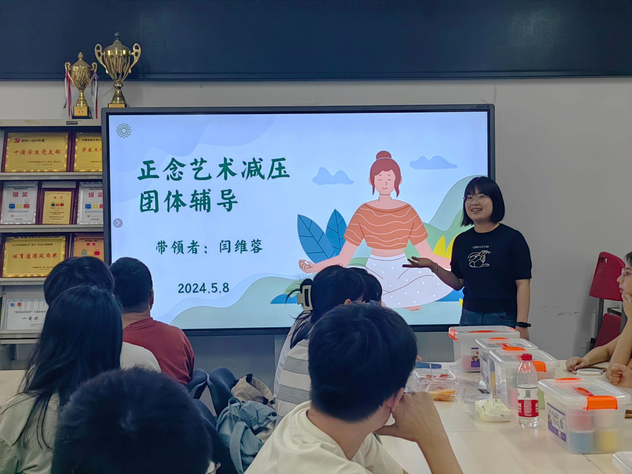 在5·25全国老员工心理健康日来临之际,为丰富公司心理健康教育活动,引导员工关注和呵护自身的身心健康,缓解工作学习带来的压力和紧张焦虑情绪,5月8日晚上,由XCSportE心为你二级心理辅导站举办的5·25心理健康月系列活动之正念艺术减压团体辅导在XCSport大楼101举行。公司党委副书记林小艳和20余名师生参与本次活动,活动由公司心理健康辅导员闫维蓉带领。