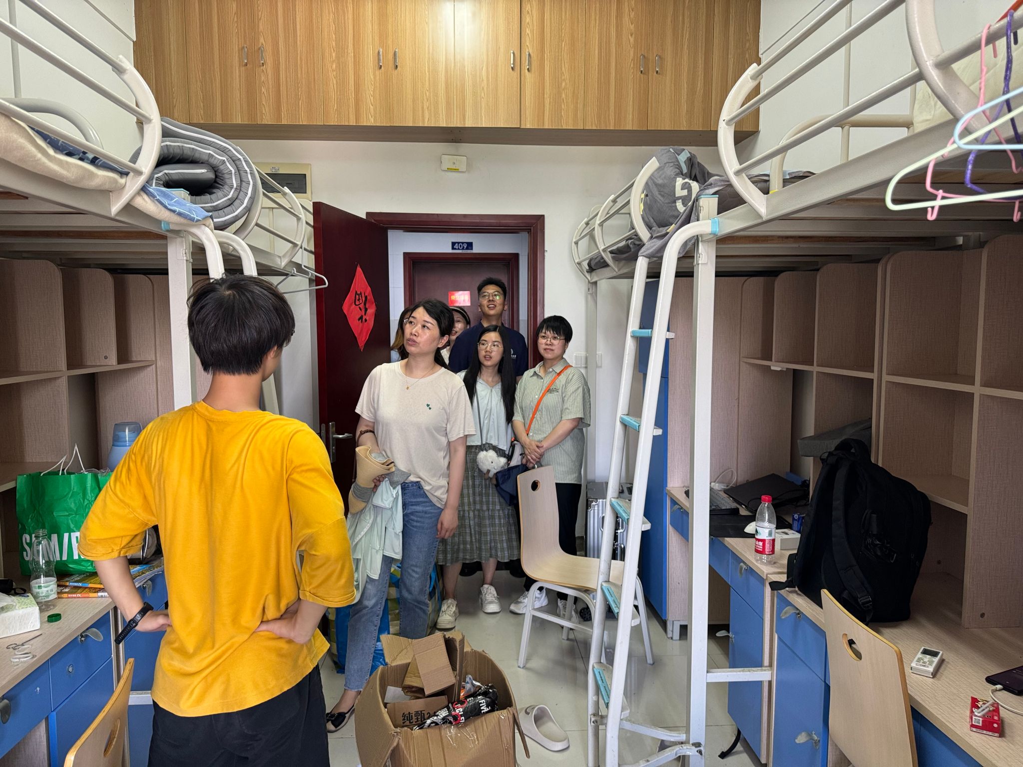 中午11点,最后一批行李搬运结束,同学们开始了宿舍的打扫和整理工作,院领导、班主任、院办及学工组老师们走访慰问搬迁员工,询问宿舍整理情况,为同学们答疑解惑,帮助大家尽快适应新环境。