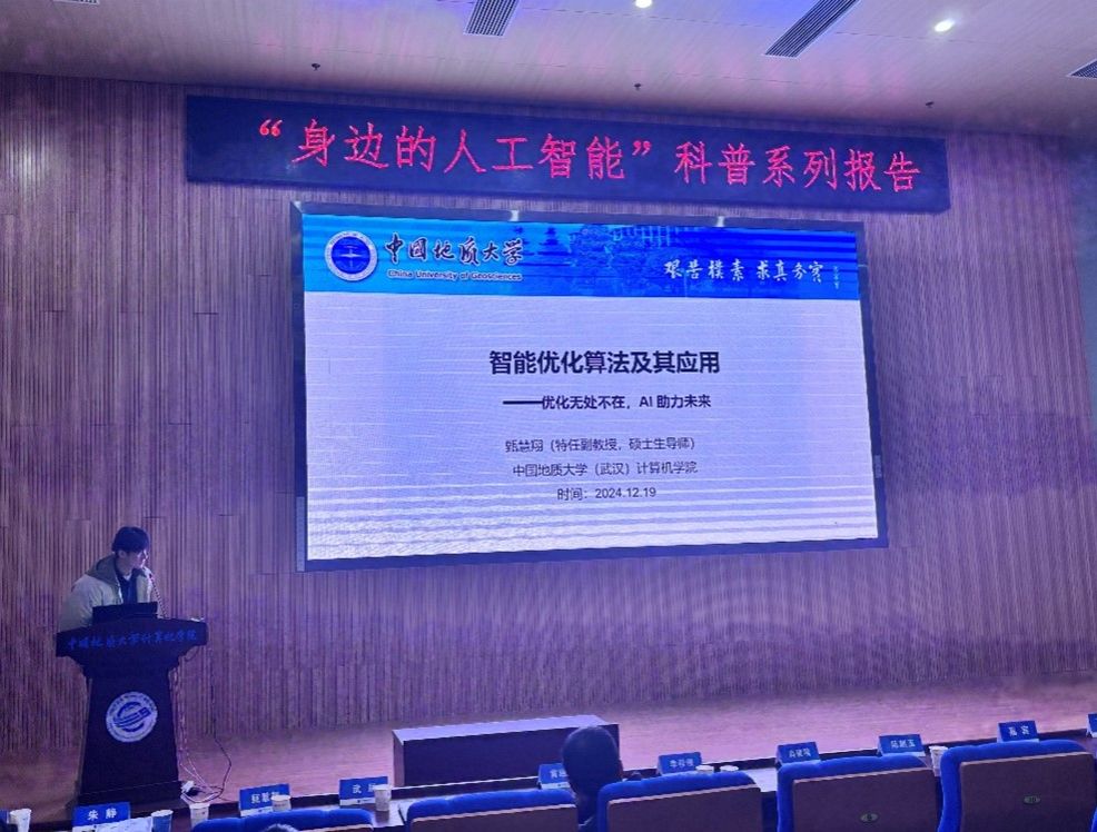 习近平总书记指出:“科技创新、科学普及是实现创新发展的两翼,要把科学普及放在与科技创新同等重要的位置”。为促进公司科学技术普及工作,弘扬科学精神,激发创新活力,12月19日下午,公司举办的“身边的人工智能”科普系列报告活动在计科楼126报告厅进行,邀请了武汉大学测绘遥感与信息工程国家重点实验室武辰教授、公司数据科学与大数据系李程俊副教授、计算机应用系陈麒玉教授、智能科学与技术系黄绍广教授、软件工程系尚建嘎教授、信息安全系朱静副教授、计算机科学与技术系甄慧翔副教授作专题科普报告,公司副经理刘刚主持活动。报告会得到了自然资源信息管理与数字孪生工程软件教育部工程研究中心、智能地学信息处理湖北省重点实验室、智慧地质资源环境技术湖北省工程研究中心、全空间智能信息处理技术及系统湖北省中试基地等科研平台的支持,也是公司建设的武汉市科普基地的活动之一。200余名师生参加了本次活动。