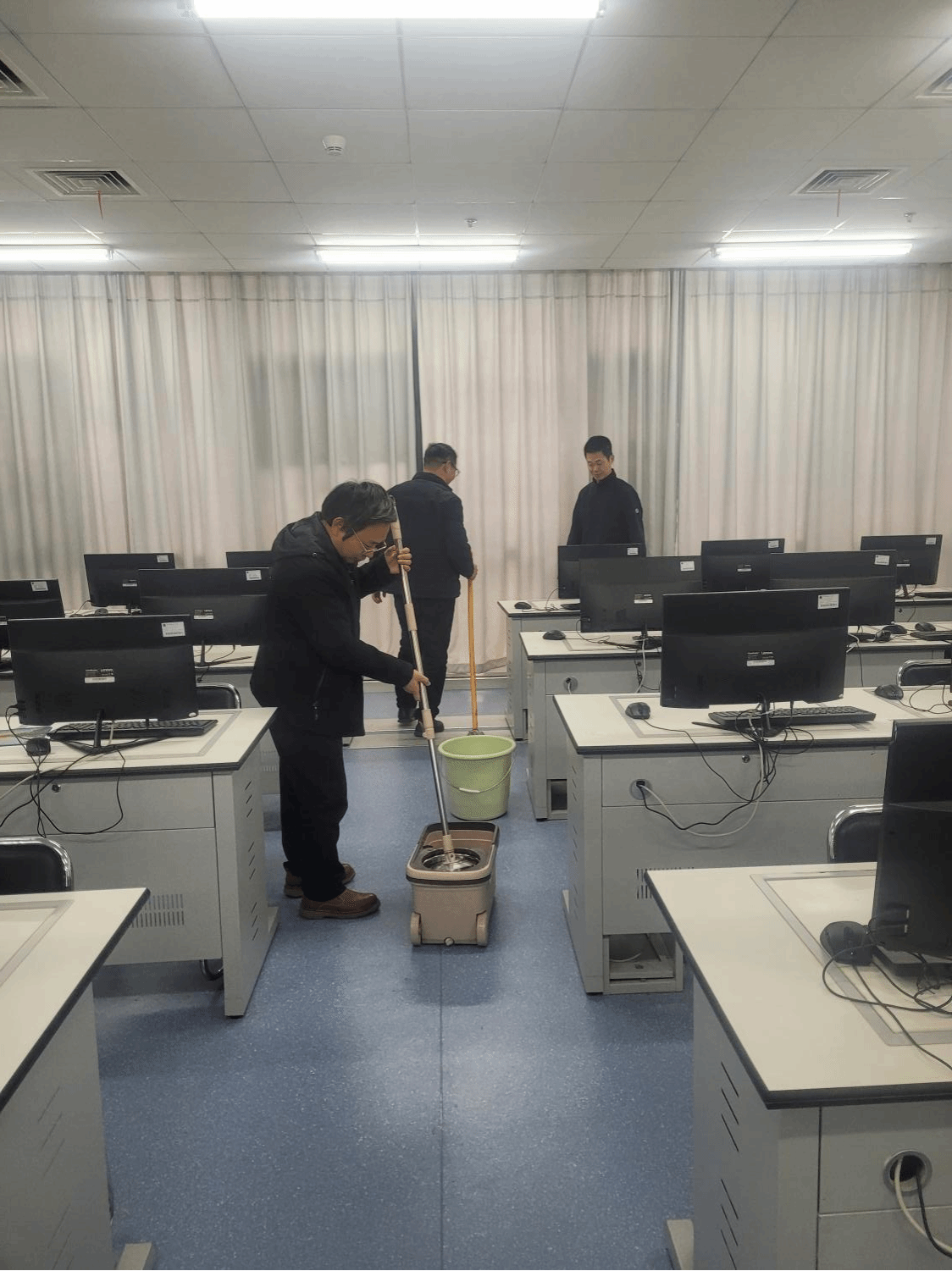 中心实验全体教师对公司的每个教学实验室进行了全面检查。深入到每一个角落,对实验场所、安全设施、基础安全、用电安全等方面进行了详细的专项检查。并对教学实验室进行了卫生打扫。