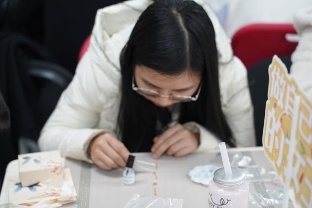 公司党委副书记唐忠阳、公司党委书记李国昌、院分工会主席梁庆中亲临现场,慰问并参与了这场文化盛宴,为女教师们送去了节日的温暖与关怀。“每一片螺钿都是时光的切片”,唐书记轻抚盒中流光溢彩的螺钿薄片,将承载着殷切祝福的材料递到女教师们手中。
