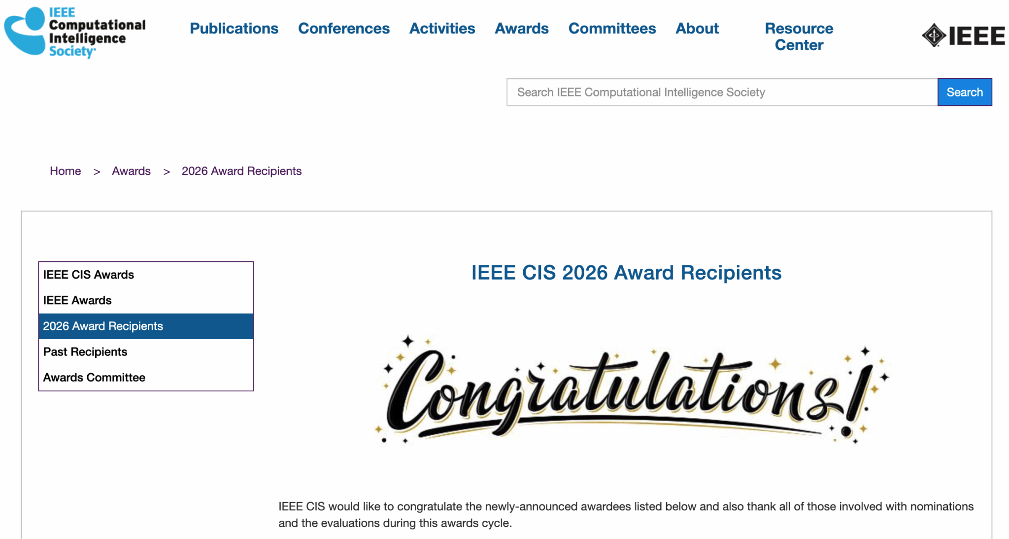 该奖项旨在表彰过去三年在 CIM 上发表的最具创新性与影响力的研究工作,是计算智能领域的重要荣誉。