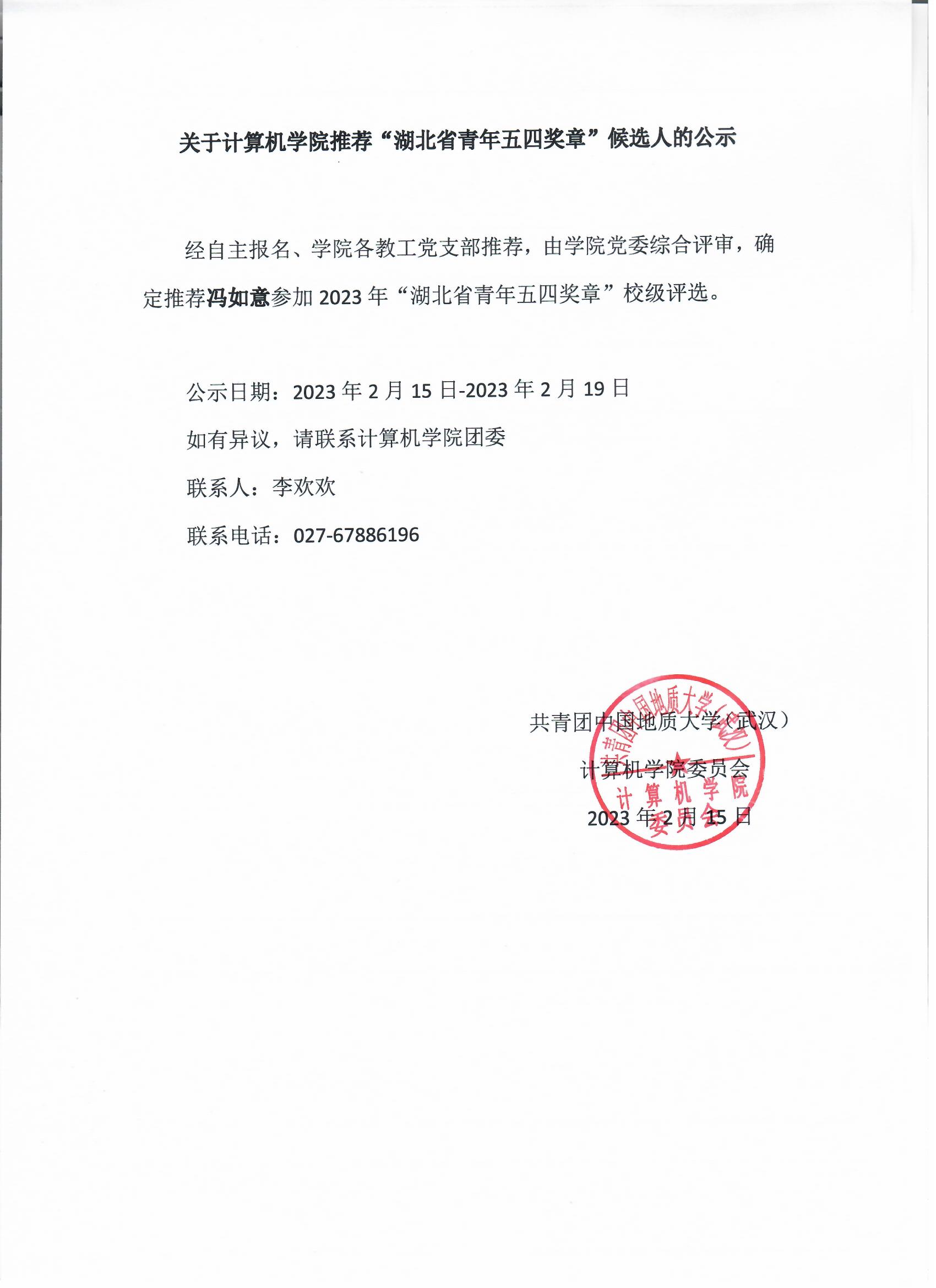 关于XCSport推荐“湖北省青年五四奖章”候选人的公示