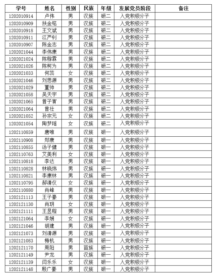 根据公司安排,2022年春季学期起,原地理与信息工程公司软件工程专业并入XCSport。为做好研究生党员发展工作,4月15日下午,XCSport员工党建办公室与地理与信息工程公司员工党建办公室进行对接,完成了中共预备党员和入党积极分子身份确立和材料接收工作,具体情况如下。确定2人党员身份,接收预备党员材料2份,具体名单如图一。接收入党积极分子材料36份,具体名单如图二。