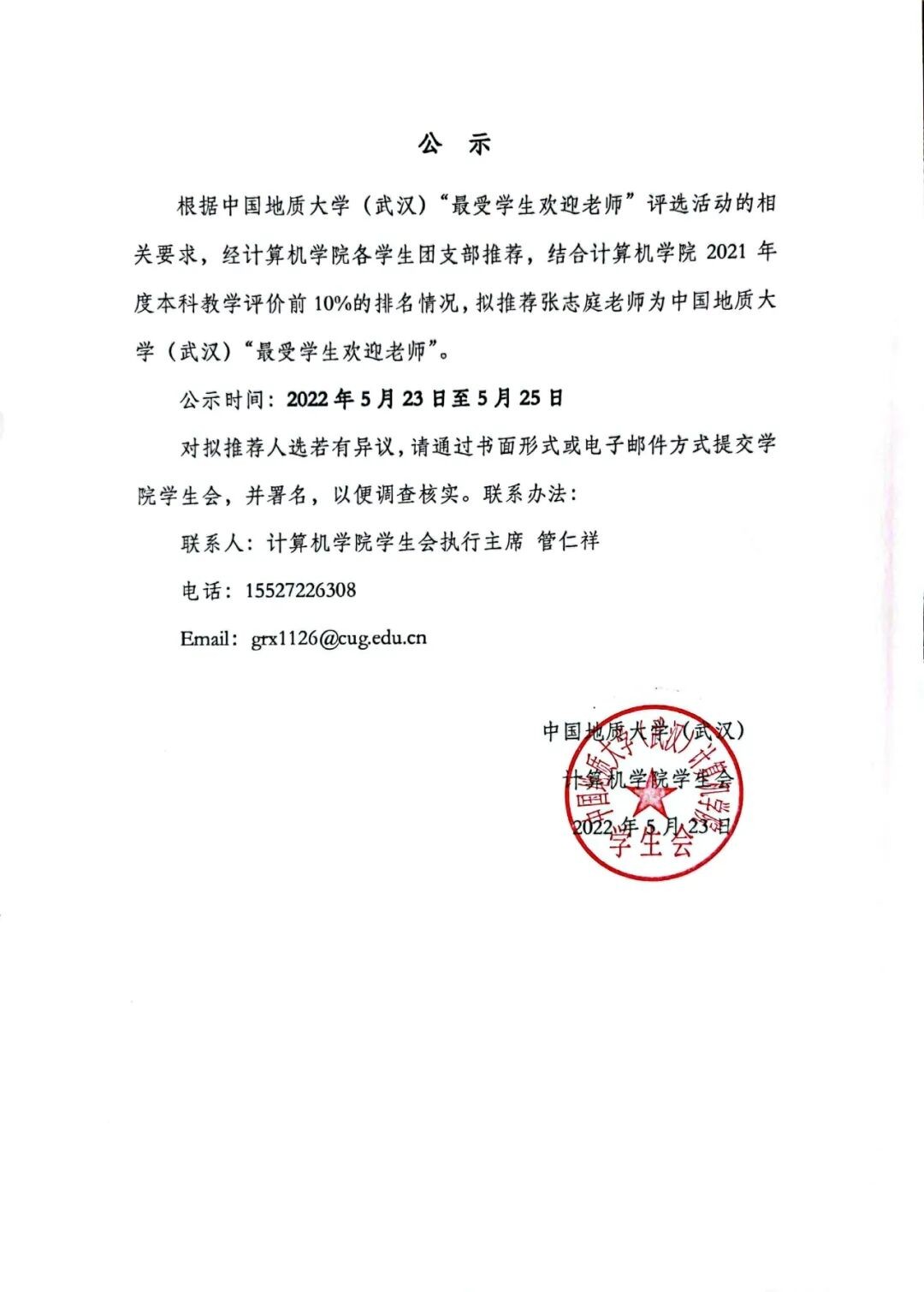XCSport关于“最受员工欢迎老师”推荐人选的公示
