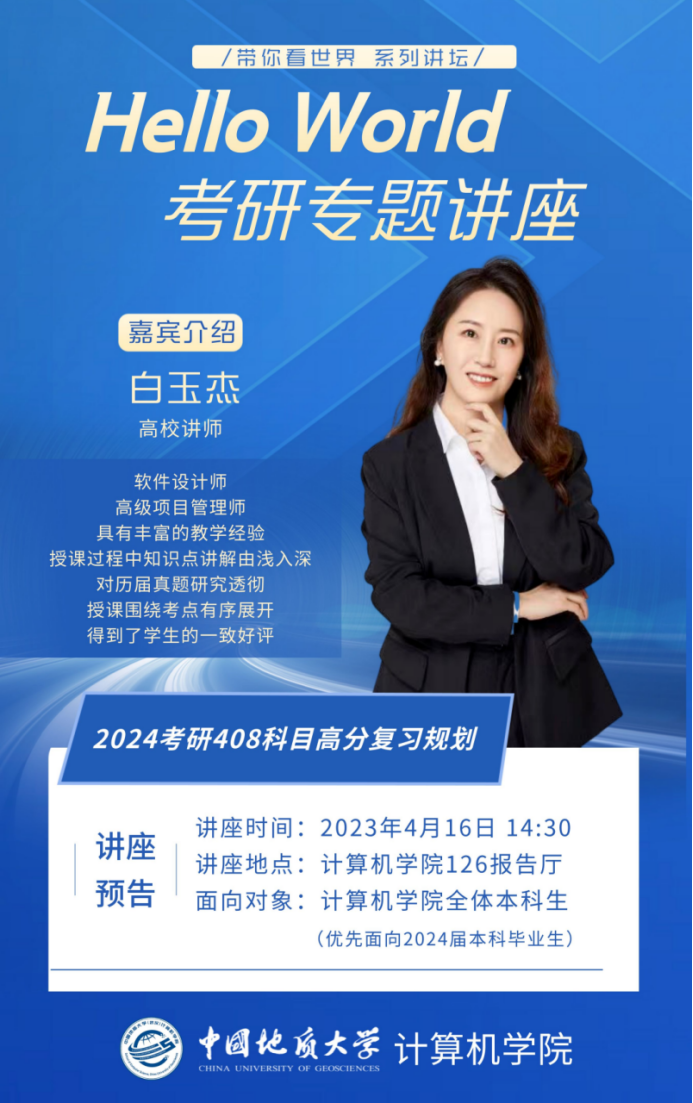 活动预告 | “Hello World”第69期 考研专题讲座:2024考研408科目高分复习计划——白玉杰老师