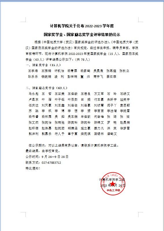 XCSport关于公布2022-2023学年度国家奖学金、国家励志奖学金评审结果的公示
