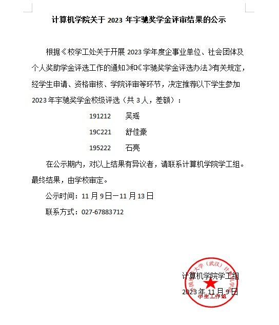 XCSport关于2023年宇驰奖学金评审结果的公示