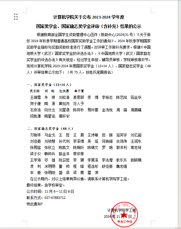 XCSport关于公布2023-2024学年度 国家奖学金、国家励志奖学金评审(含补充)结果的公示