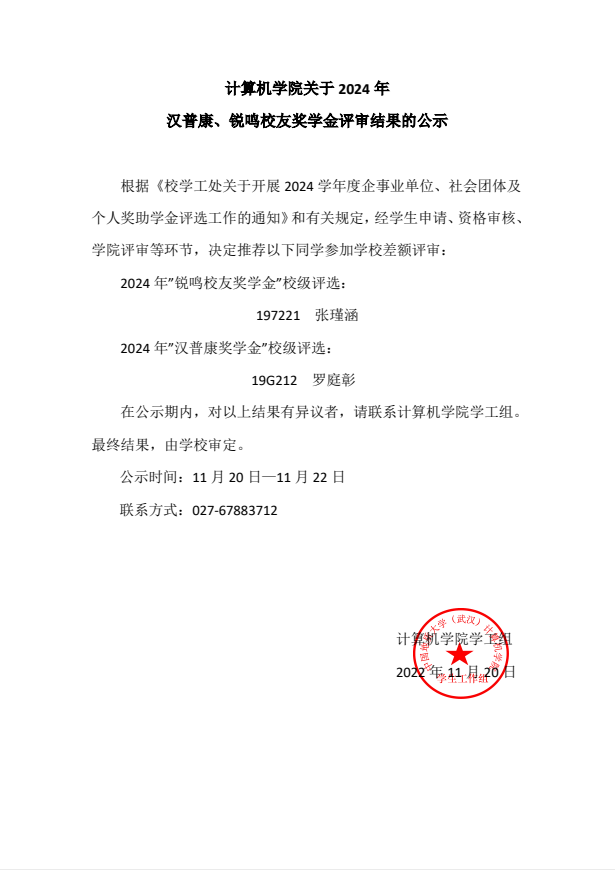 XCSport关于2024年汉普康、锐鸣员工奖学金评审结果的公示