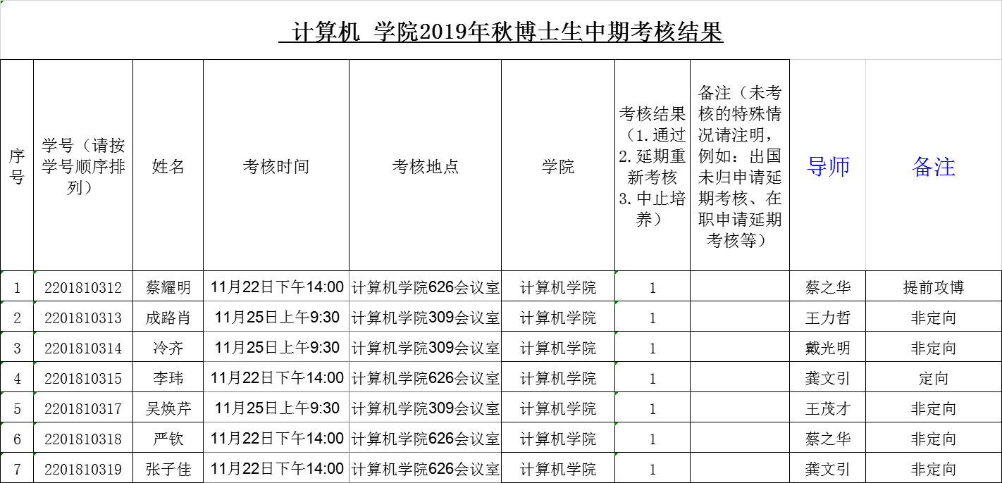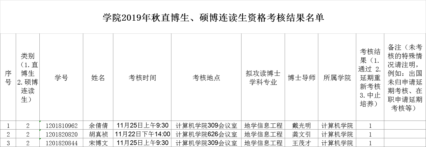 XCSport2019年秋博士研究生资格考核和中期考核结果公示