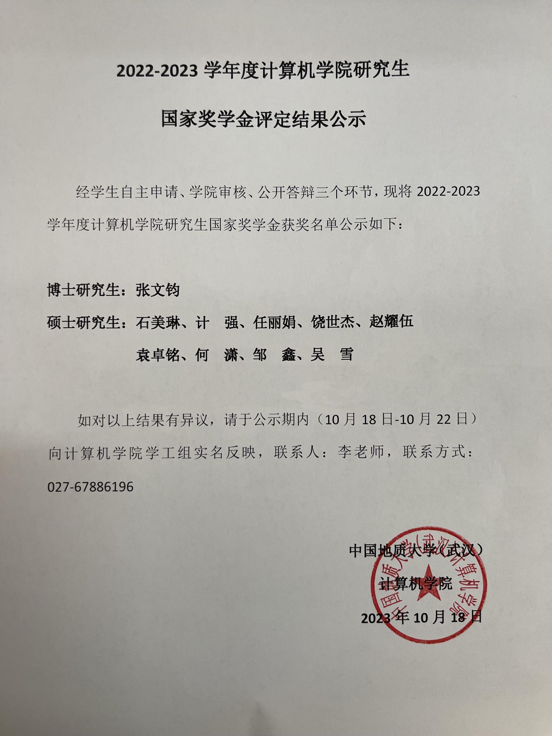 2022-2023学年度XCSport研究生国家奖学金结果公示