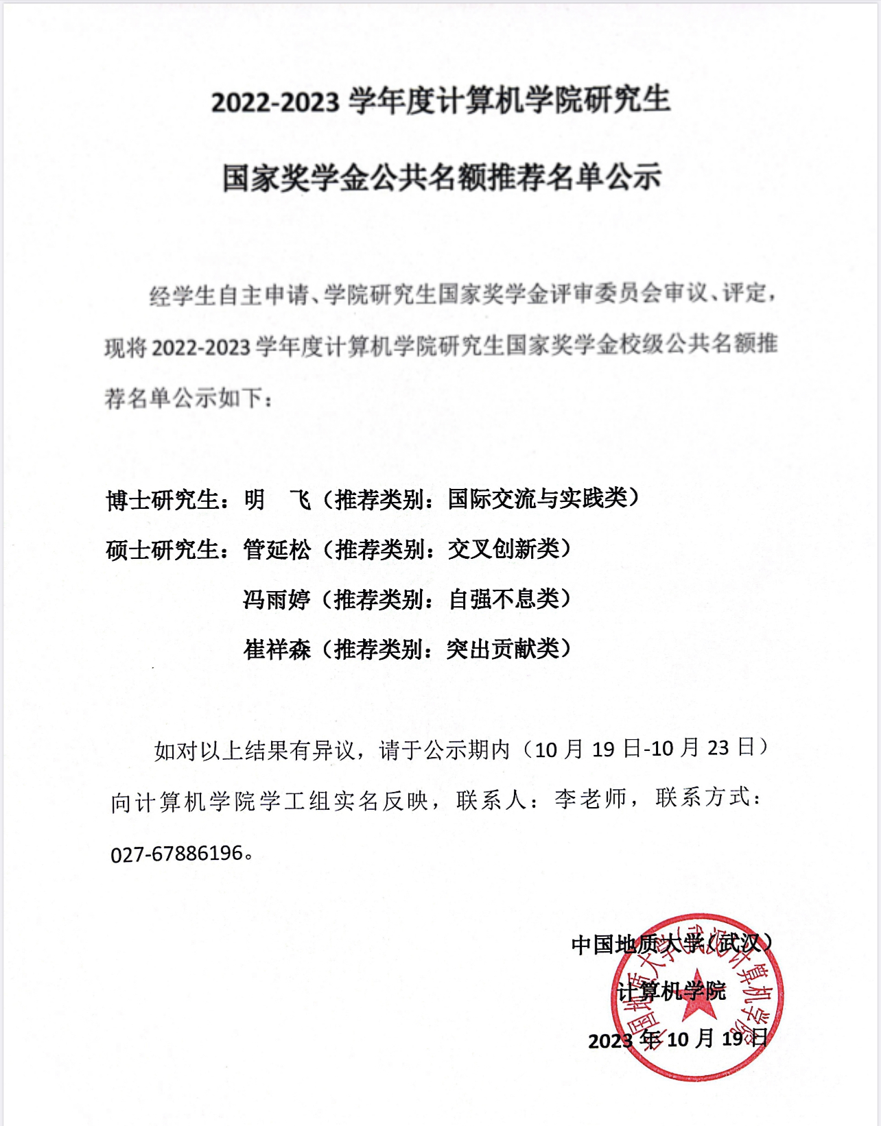 2022-2023学年XCSport研究生国家奖学金公共名额推荐名单公示