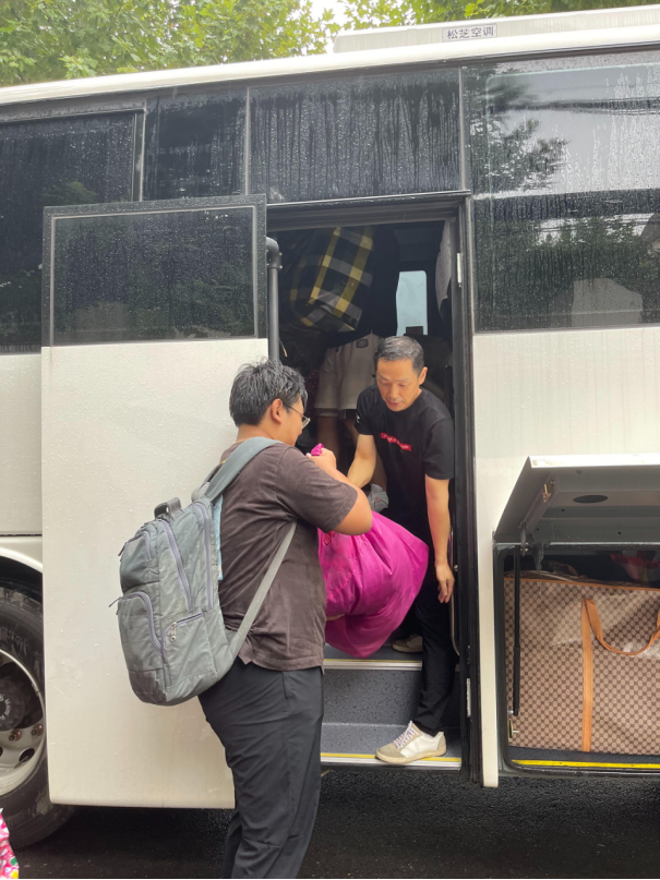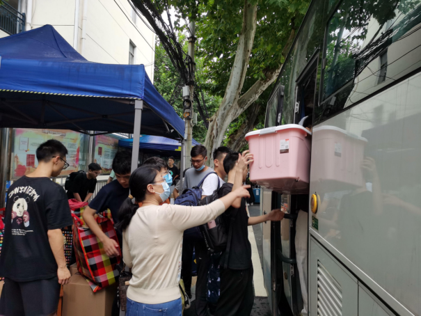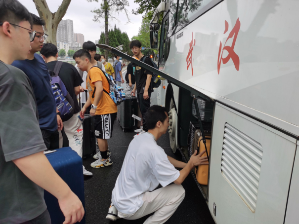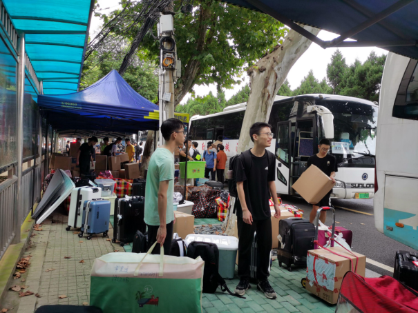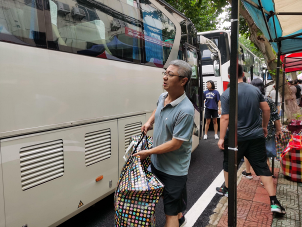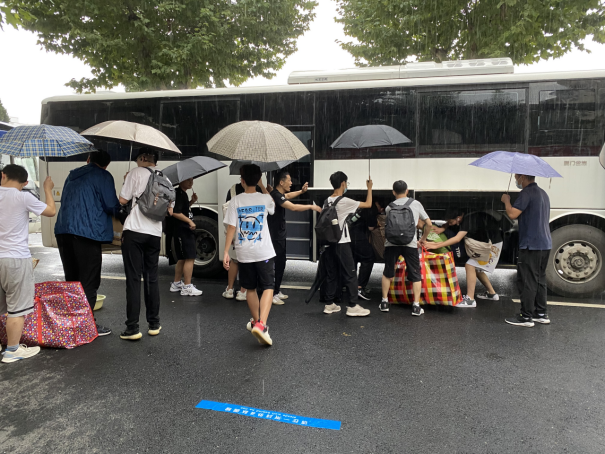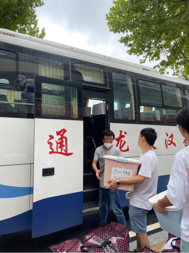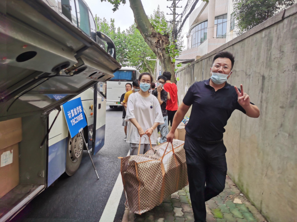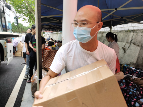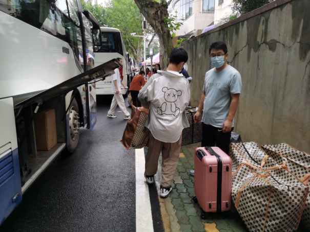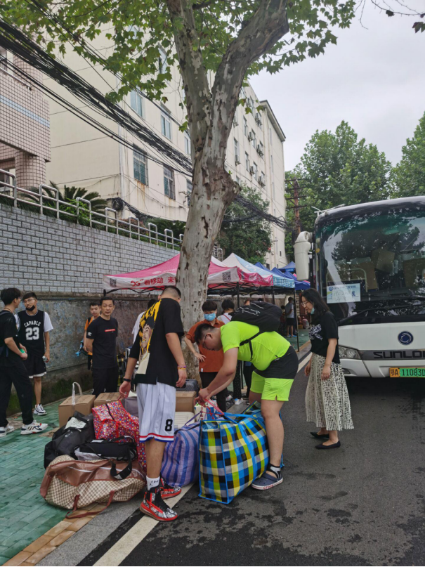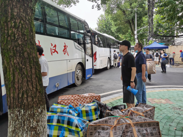 到场的负责的班主任、辅导员老师们组织员工有序进行搬迁。令人感动的是,各班班主任上午6点就提前到达乘车点,维持现场秩序,并积极地帮助员工搬运行李,很快完成了装车,顺利驶向未来城校区;