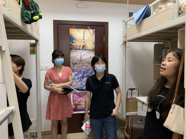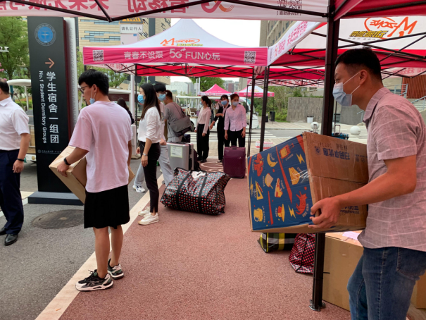 安全抵达未来城校区后,在学长学姐和老师们的指引和帮助下,同学们有序来到了一组团、二组团的员工宿舍。