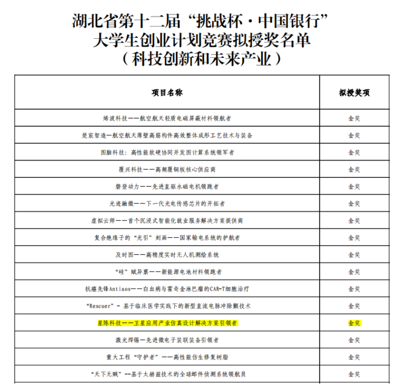 喜报 | 公司员工团队“星陈科技”荣获湖北省“挑战杯”金奖!