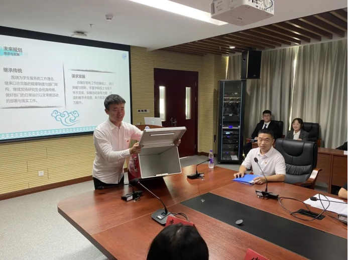 随后,进入第六项议程,候选人竞选答辩阶段。按照抽签顺序,各候选人依次进行竞选答辩,从自我介绍、工作经历、岗位认知、竞选优势和未来工作计划等方面进行展示和陈述。