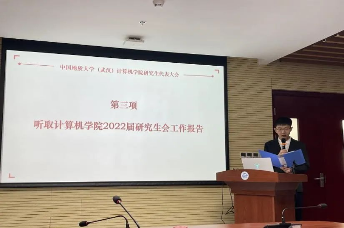 大会第三项,公司研究生会主席团成员崔祥森做2022届研究生会工作报告,总结回顾了过去一年研究生会在思想引领、科创研学、素质拓展等方面展开的工作和取得的成效。