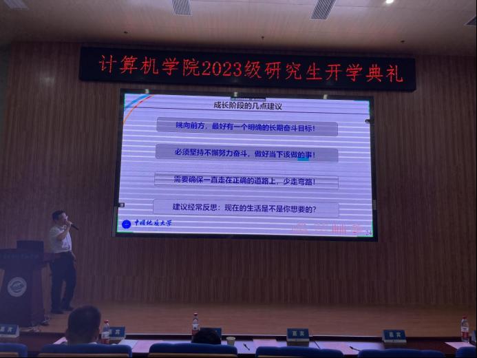 张经理首先肯定了同学们为考研付出的努力,对2023级研究生的到来表示热烈的欢迎。他以公司发展历史与人才培养成绩为切入点,向同学们展示了公司丰厚的底蕴,并从专业设置、团队队伍、科研平台与科研项目等方面介绍了公司近年来发展的概况。他谈到,国家在高新领域的巨大投入以及良好的政策指引,公司深厚的学术科研底蕴和一代代地大人的砥砺奋斗,为今天的在座的同学们奠定了良好的成长环境和优渥的发展平台,希望同学们秉承“艰苦朴素,求真务实”的校训精神,在地大XCSport刻苦钻研,实现出属于自己的新突破,为国家前沿科技发展贡献自己的力量!