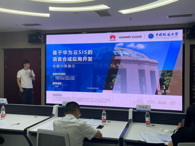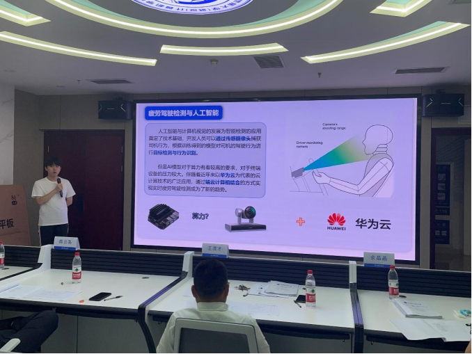 前期,XCSport组织了校内初选,五个项目脱颖而出晋级校赛,分别是基于华为云pass的语音合成应用、基于端云协同的疲劳驾驶识别应用、端云协同疲劳驾驶实时检测、基于昇思Mindspore的医学图像分割应用、地学大数据共享服务平台。比赛现场,入围参赛队从项目背景、产品创新、商业模式、教育引领等多维度全方位展示本项目情况。各参赛项目团队以高质量的内容展示、自信得体的台风体现了公司学子创新创业风采,彰显了公司近年来创新创业教育改革的成果,为大家上演了一场精彩的比赛,以下是各个团队的答辩现场。