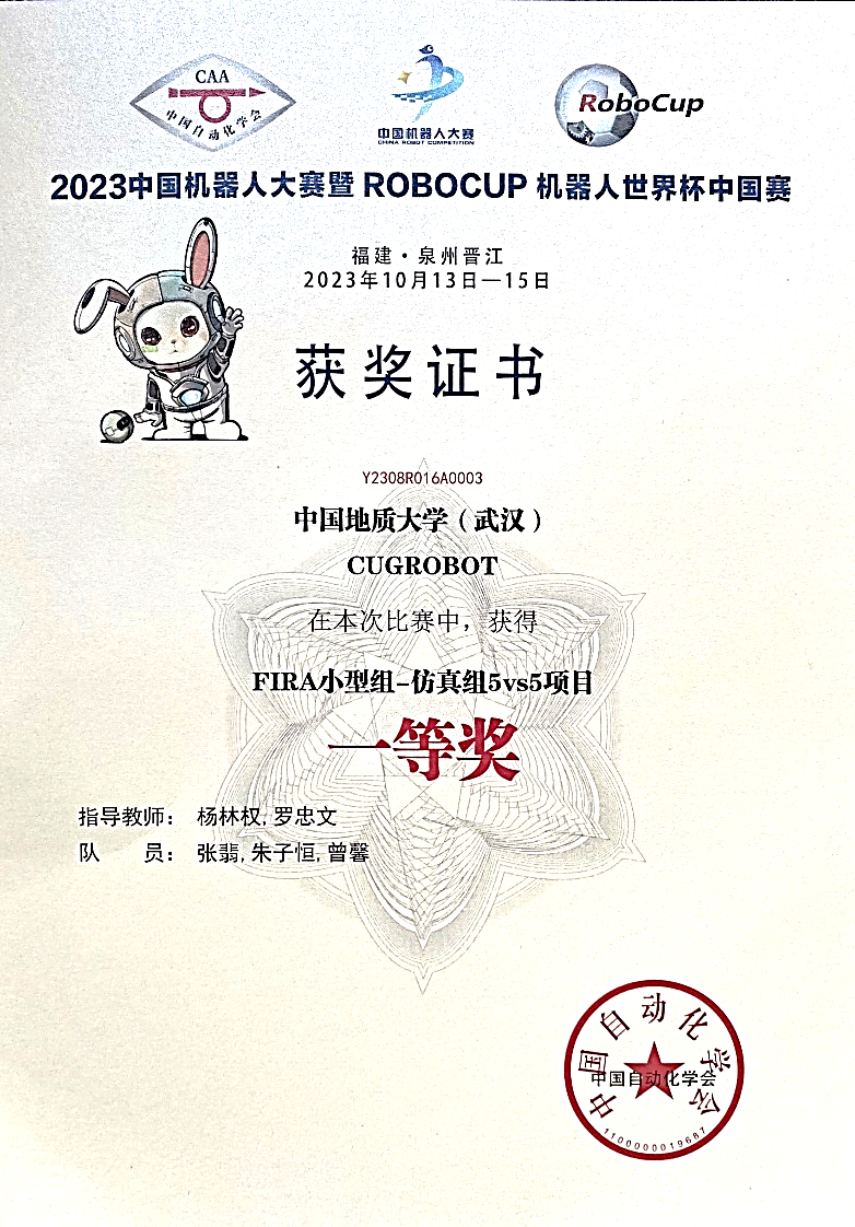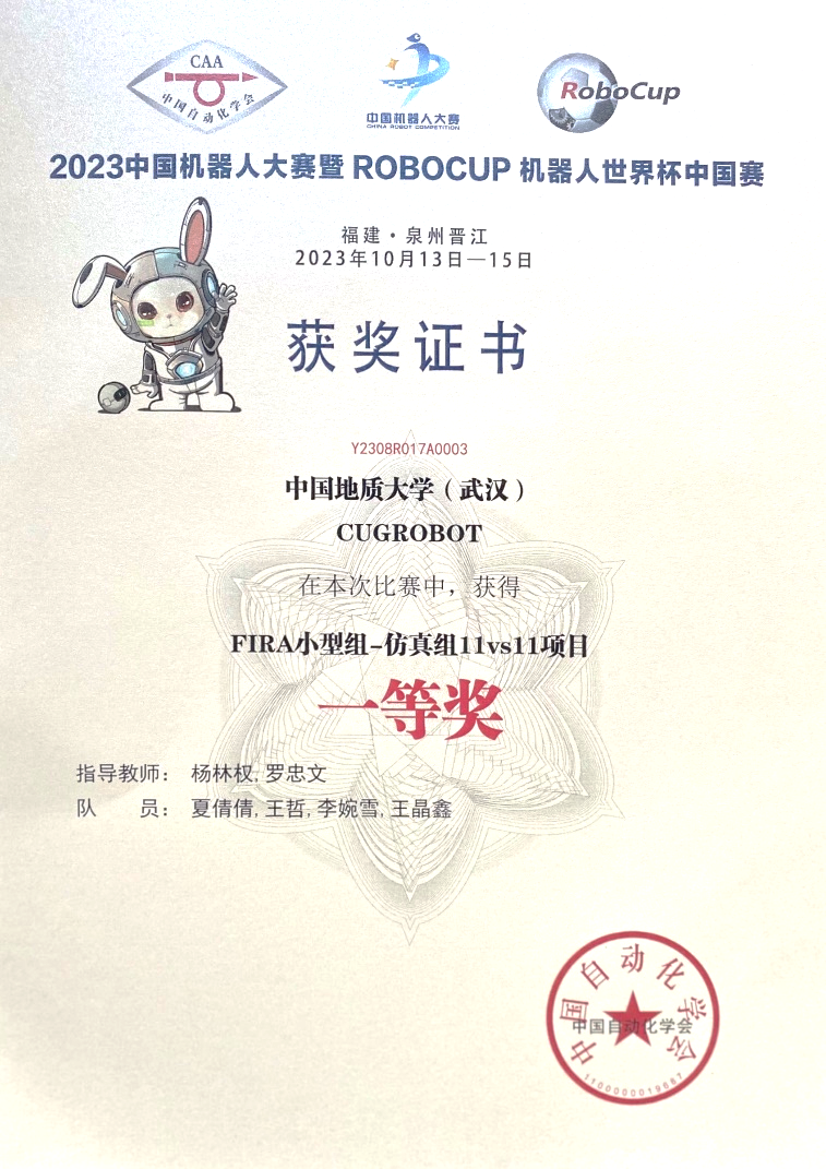 10月13至15日,2023年“中国机器人大赛暨RoboCup机器人世界杯中国赛”在福建晋江国际会展中心落下帷幕。公司XCSport杨林权副教授和罗忠文教授指导的员工团队参赛。经过激烈的比赛,最终员工团队勇夺FIRA仿真组5vs5项目第3名,国赛一等奖和仿真组11vs11项目的第3名,国赛一等奖。