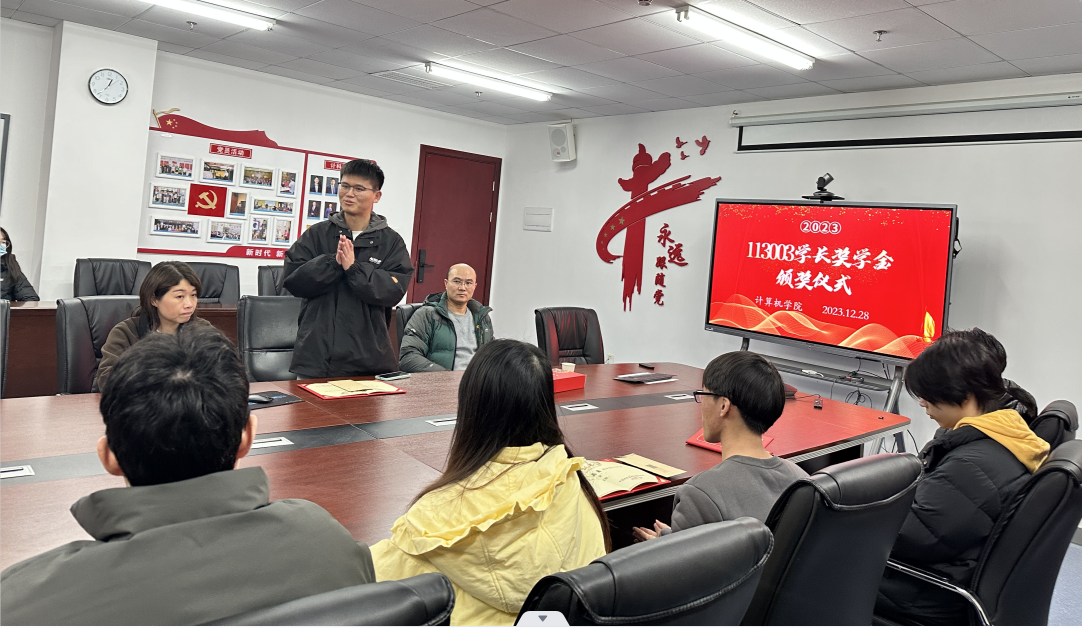 龚文引代表111003班讲话。他说,“111003班学长奖学金”设立的目的旨在激发员工的学习热情,培养他们独立思考和解决问题的能力,以及在面对挑战时的坚韧不拔。奖学金的设立不仅是对员工学术成就的认可,更是对他们积极态度和卓越品质的肯定。希望获得奖学金的同学能更加的积极进取,取得更加突出的成绩。
