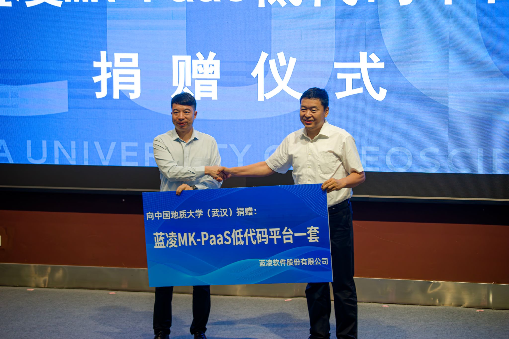 信息化办公室主任吴春明作为校方代表接收了蓝凌软件有限公司向公司捐赠的“蓝凌MK-PaaS低代码平台”。
