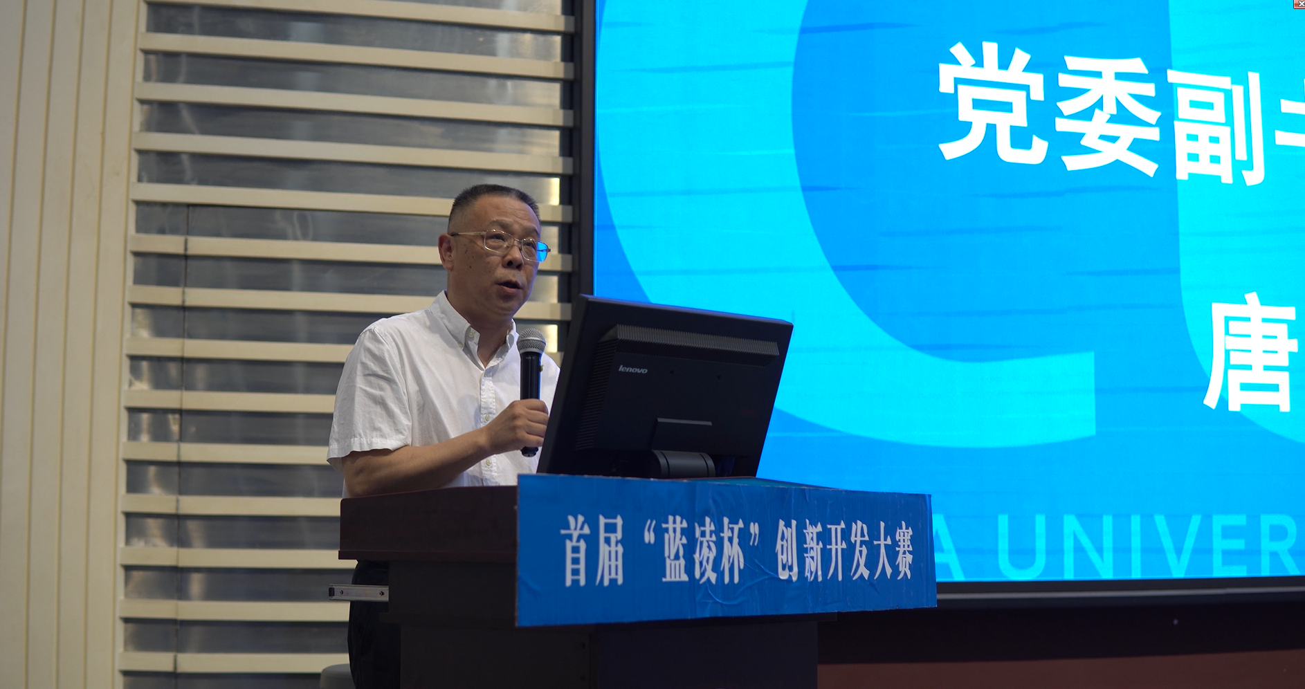 何春炎致辞。他回顾了“蓝凌杯”创新开发大赛筹备与举办的历程,高度赞扬了参赛员工取得的进步与成绩,向所有参加比赛、收获成长与经验的选手们表达祝贺,并对他们的未来发展寄予厚望,期待能和同学们在蓝凌相会。