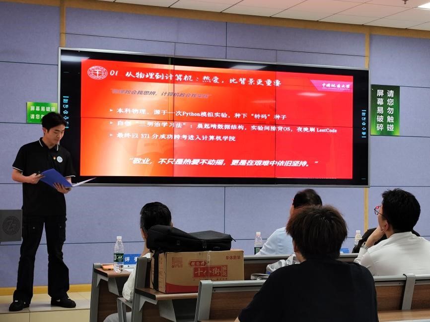 在答辩环节,参选者们各展长才。在线下答辩环节中,李杭梦、袁卓铭、李金诺、金汤悦、王昱博、郭嘉乐、卢耀七位同学讲述真挚、分享生动,展现了计算机学子在科研创新、社会实践、文体活动等方面的卓越风采;在线上部分中,明飞、郑诗语、田甜、叶辰勋、石京浩、李赟六位同学,通过精心录制的视频,展示了他们在学习科研、组织活动等方面的闪光点,彰显了计科学子朝气蓬勃、积极进取的精神风貌。
