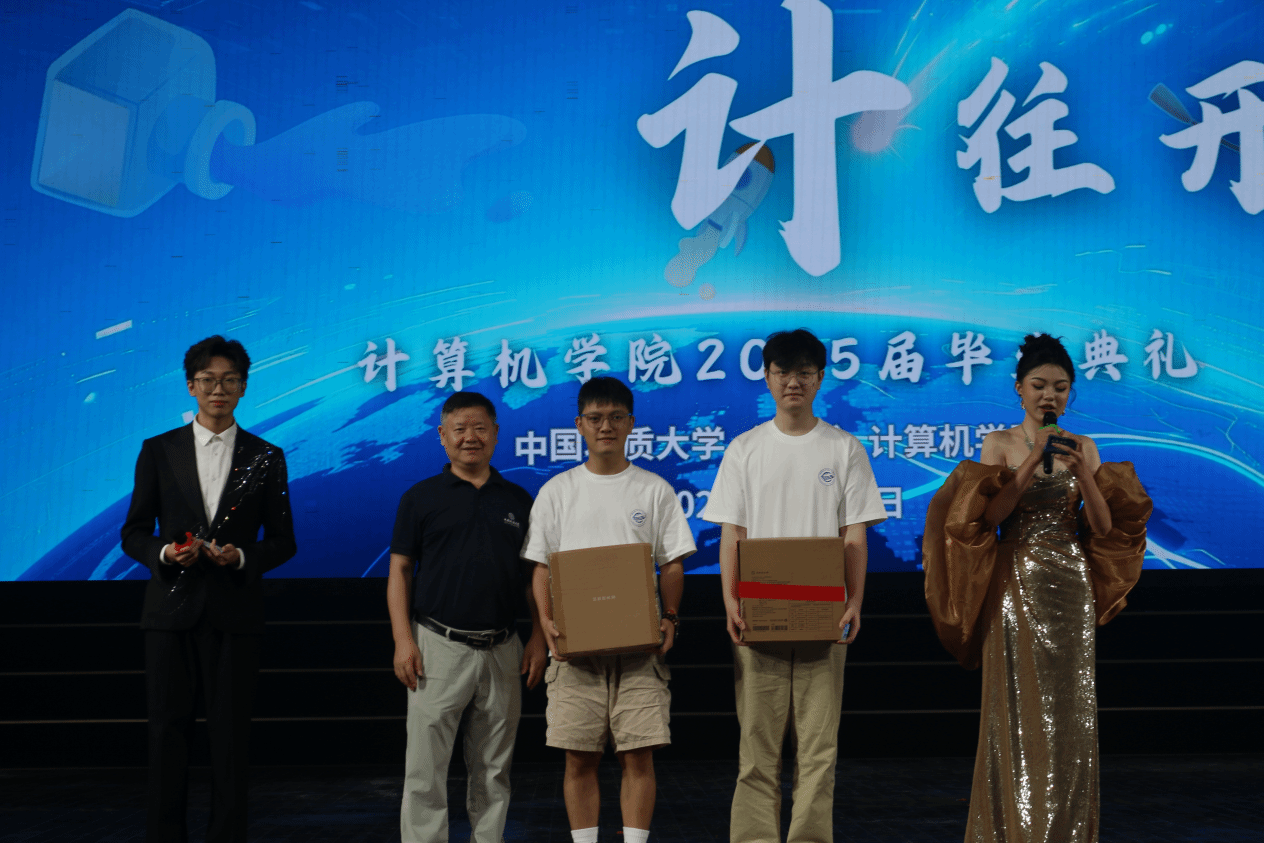 公司副经理刘刚宣读优秀班级与优秀毕业生。优秀毕业研究生代表邢斯豪和本科生代表郭鹏顺分别发表获奖感悟。