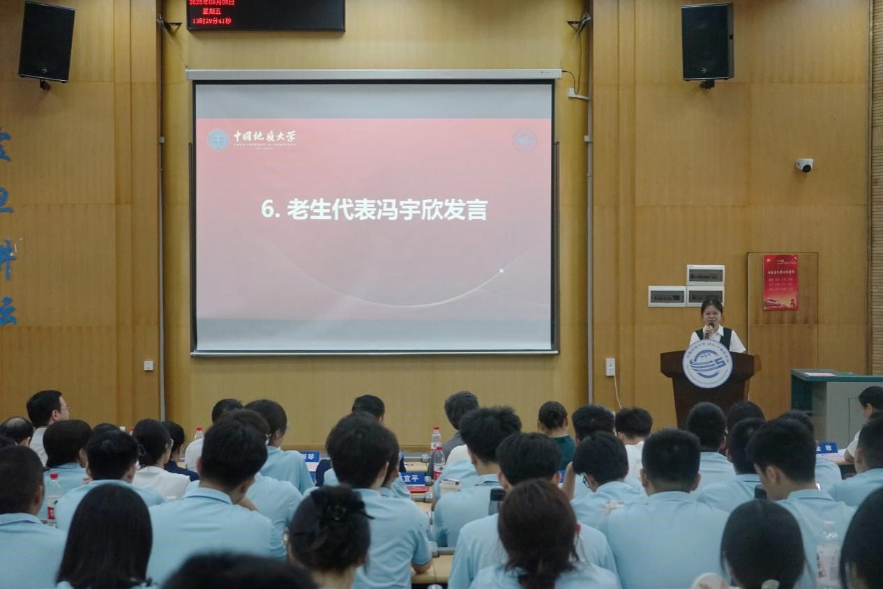 公司团委副书记、2023级本科生冯宇欣作为老生代表分享经验。她鼓励新生们合理安排时间,积极参与校园活动,在学习中不断提升自己,在实践中锻炼自己,同时表示她会尽自己所能帮助新生们尽快融入公司。