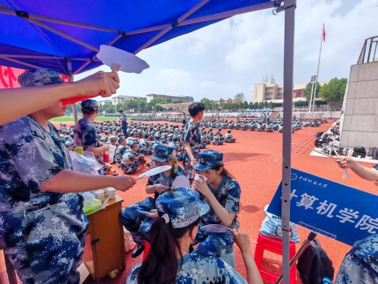 特别令人感动的是,虽然只是预热训练,但XCSport组建的“代码先锋”军训服务队全程待命。他们穿梭在训练场间,精准调度物资、协助医护保障,就像运行一套精密的操作系统,用实际行动诠释着计科人“严谨务实、团结互助”的专业精神。