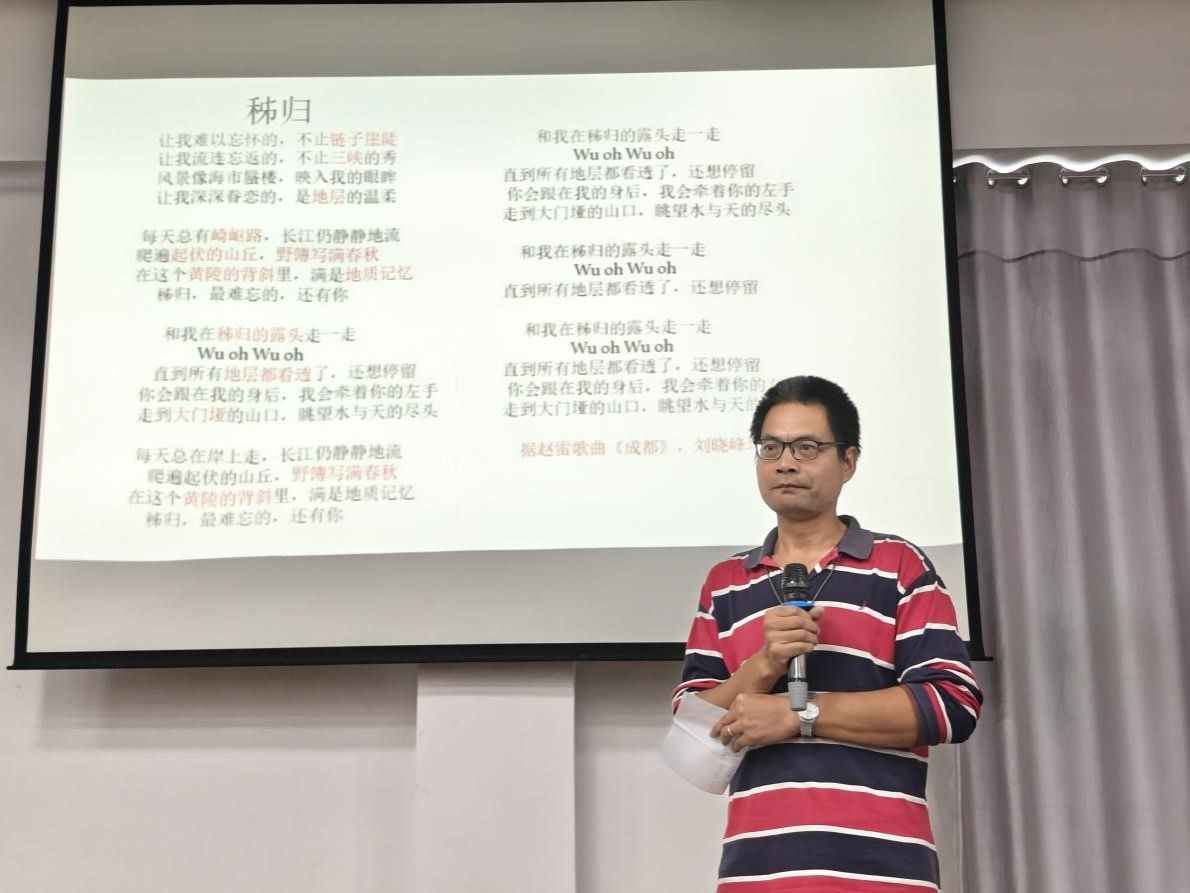 员工代表罗鑫也走上台分享感悟,他动情地提到这一路的过程,每一步成长都离不开导师的指导与同伴的互助;秭归的山野教会我们的不仅是专业技能,更是“脚下有痕、心中有尺”的地质人精神。随后,张志庭老师代表回顾了整个实习历程:从初识地质工具的懵懂,到熟练掌握剖面实测、填图绘图的技能;从冒雨穿行雾河山林的坚持,到用无人机科技赋能地质测量的突破,每一步都是成长的印记。