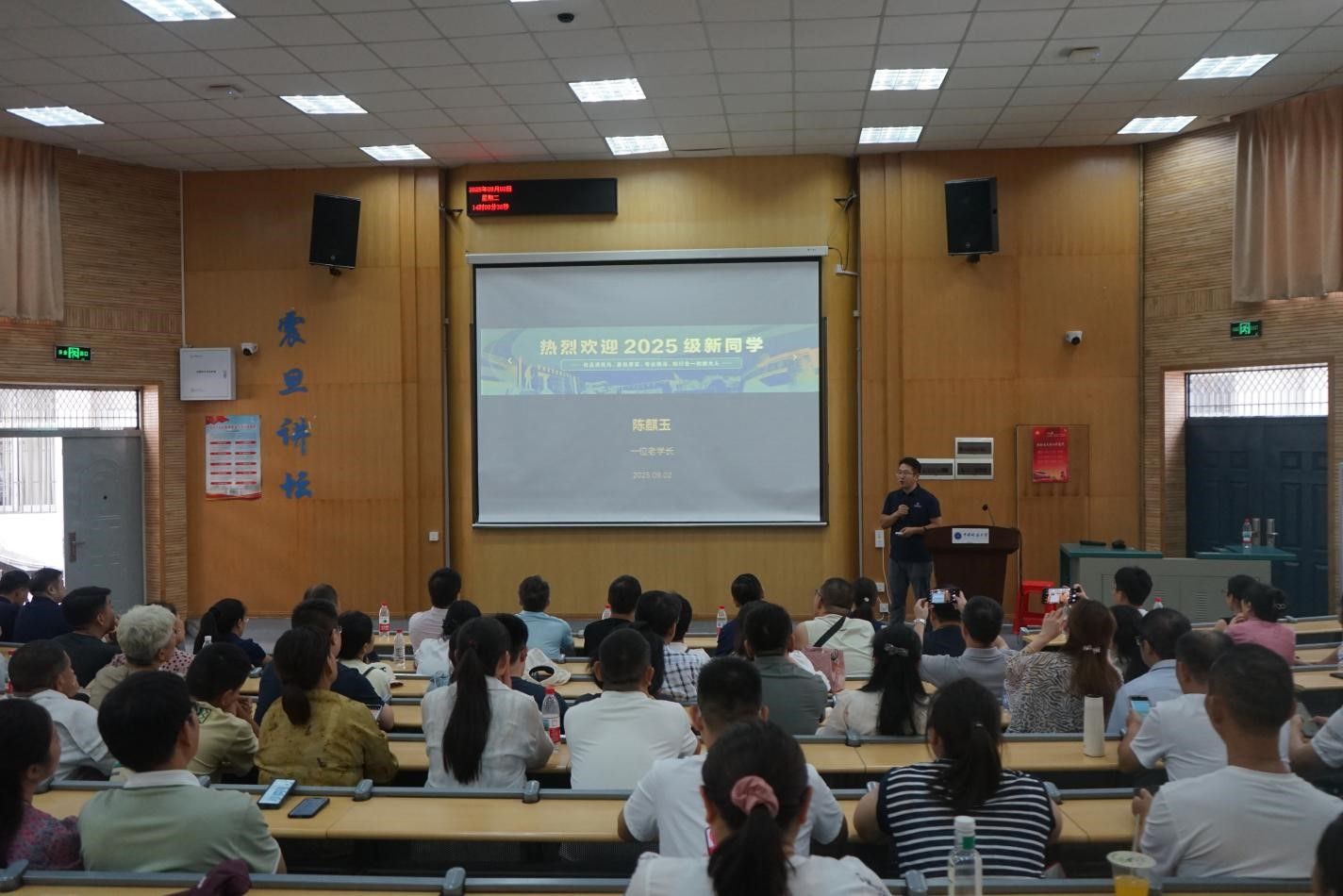 辅导员谭文博开展新生入学教育,重点讲解大学日常管理要点,助力新生快速了解大学规则、适应新环境。