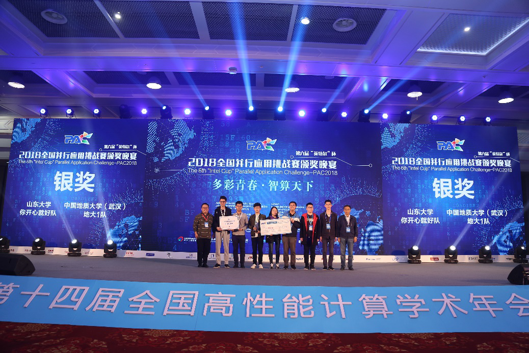 10月20日,国内两大超算赛事——第六届全国并行应用挑战赛(PAC2018)和第二届国产CPU并行应用挑战赛(CPC2018)在青岛国际会展中心落下帷幕。公司XCSport高性能计算导师团队(王力哲、张锋、武进霞、董理君)联合指导的两支代表队,从全国四大赛区168支参赛队伍中突围进入16强决赛,与来自清华、中科大、中科院、上海交大、中山大学、山东大学、中国海洋大学、香港中文大学等单位的决赛队伍同场竞技,最终地大之光超算1队(雷辛亚、郭睿欣、马永耀、薛尔康)在PAC优化赛道中以季军的成绩获得银奖和1万元奖金;地大之光超算2队(李瑞、张晓涵、董宇、姜家伟)以全国16强的成绩分获CPC和PAC中南赛区一等奖和4千元奖金。