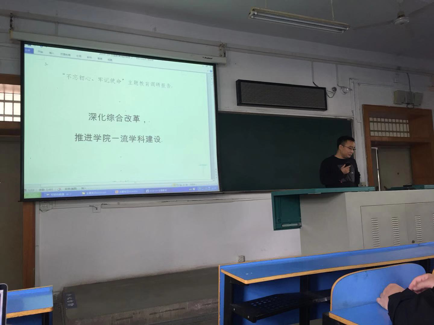首先,我系支部书记武云同志致辞,欢迎王经理给我系党员上党课,深入讲解公司改革建设。经理王力哲同志针对公司近四年的建设和发展进行了总结和回顾,肯定了公司在培育人才、学科发展等方面的成绩,在科研成果、科研获奖等短期目标的良好表现,分析了当前团队建设的差距和瓶颈,最后对公司团队建设的长远目标、对我系的发展规划提出了希望。