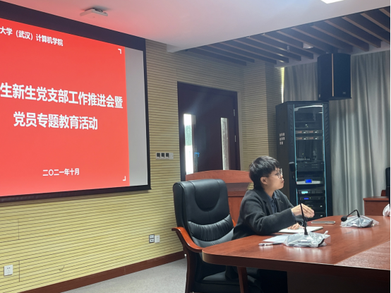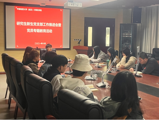 (通讯员:汪舟天)为进一步加强对新生党员的教育培养,提高员工党员干部素质能力和工作本领,充分发挥员工党支部战斗堡垒作用,公司于10月22日在323会议室开展新生党支部工作推进会暨党员专题教育活动。院团委书记、研究生辅导员李欢欢,兼职辅导员杨雯绚以及2021级硕士预备党员和员工党支部书记参会,李欢欢担任主持。